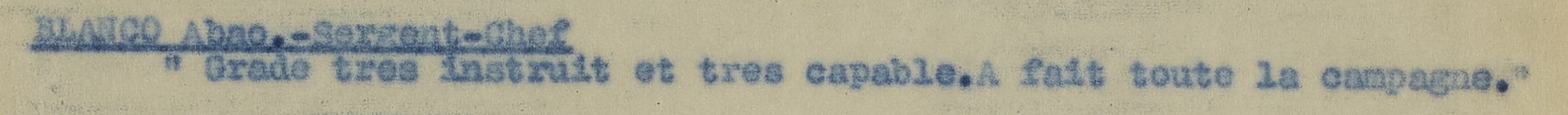 Gradé très instruit et très capable. A fait toute la campagne.