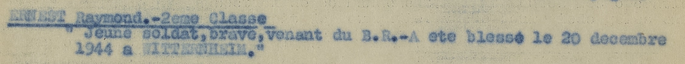 Jeune soldat, brave, venant du BR. A été blessé le 20 décembre 1944 à Witternheim.