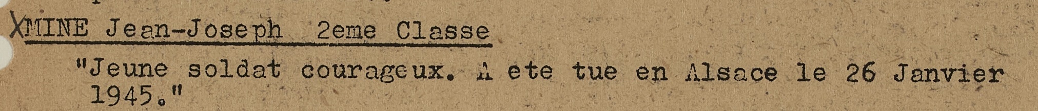 Jeune soldat courageux. A été tué en Alsace le 26 janvier 1945.
