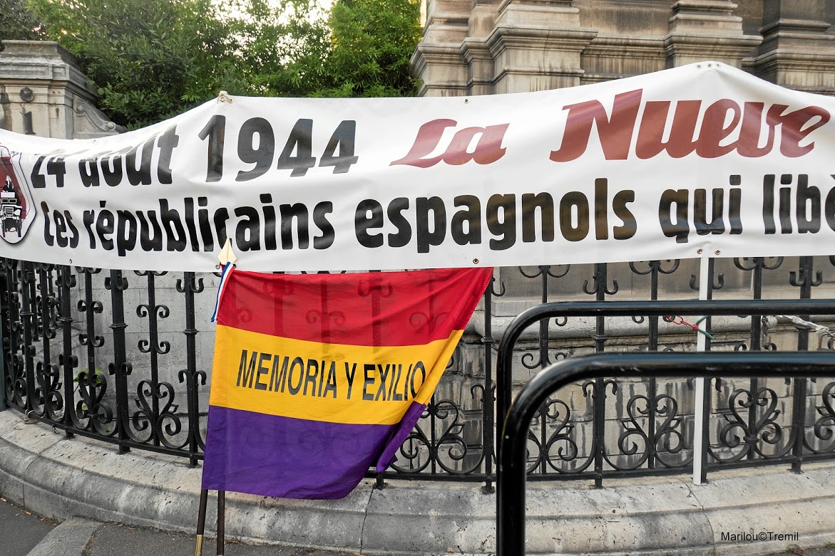 Cette année, nous voudrions dédier cet hommage à notre amie, disparue cette année sans crier gare, fille d’un combattant espagnol de la Nueve, José Cortes, blessé rue des Archives le 25 août 1944 et qui épousa l’infirmière qui lui sauva la vie. Sa fille, notre regrettée Marie José fut toujours présente à toutes les actions et interventions concernant la mémoire de son père et de ses compagnons.
